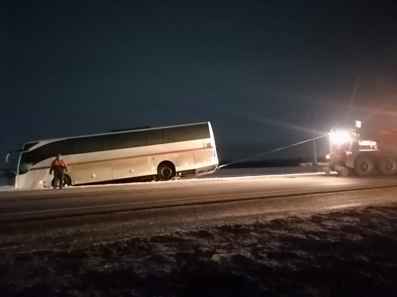 Благодаря быстрой реакции и слаженной работе, мы смогли оперативно вытянуть автобус с помощью лебедки без повреждений. Водители и пассажиры остались целы и невредимы, что для нас является главным приоритетом в таких ситуациях.